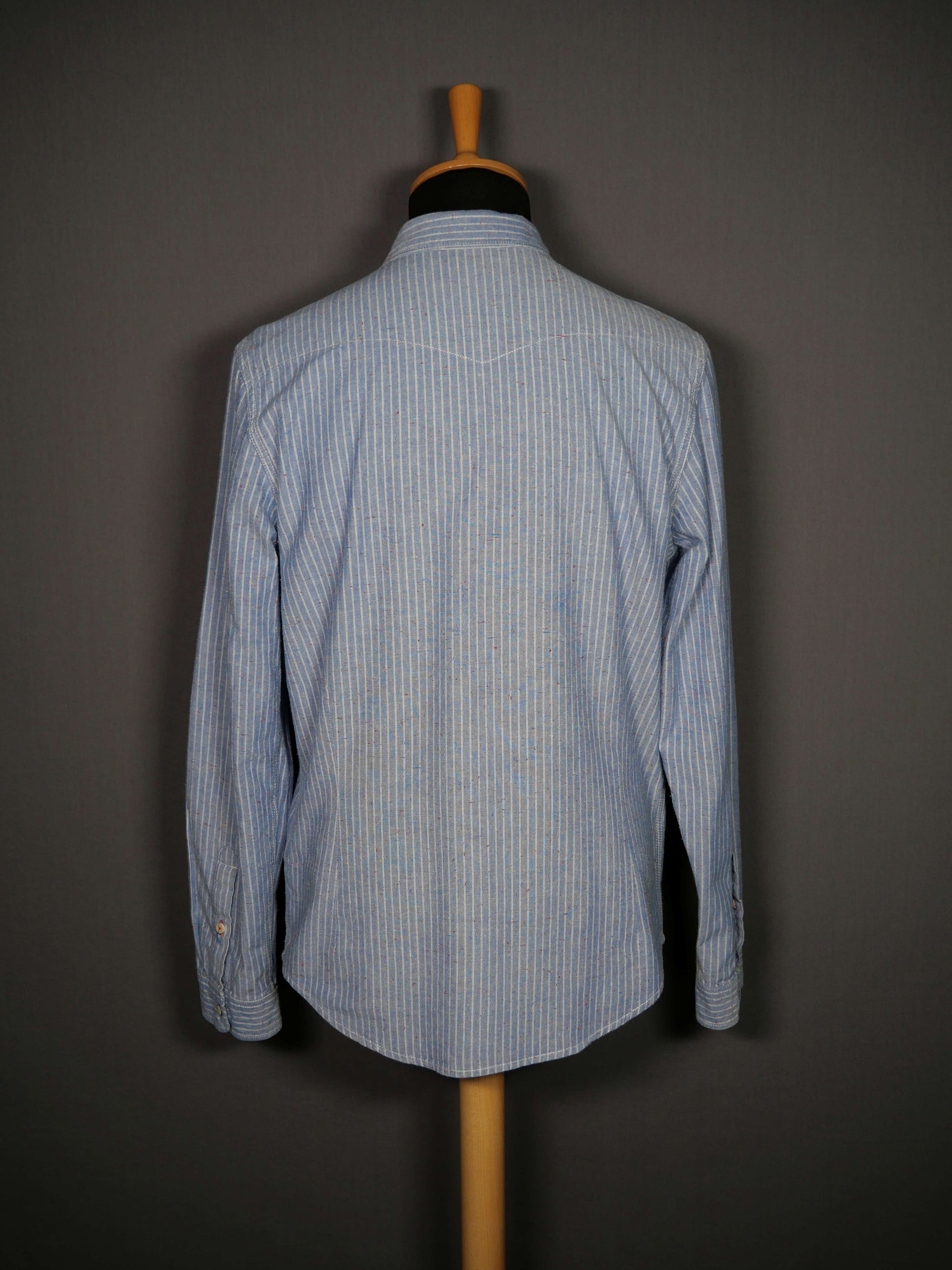 Lee classic Westershirt blau Zustand: Gut / Getragen Material: Baumwolle & Polyester Grösse: M Kragen: 16.5 inch Rücken: 76 cm Brust: 108 cm Taille: 100 cm Schulter: 45 cm |