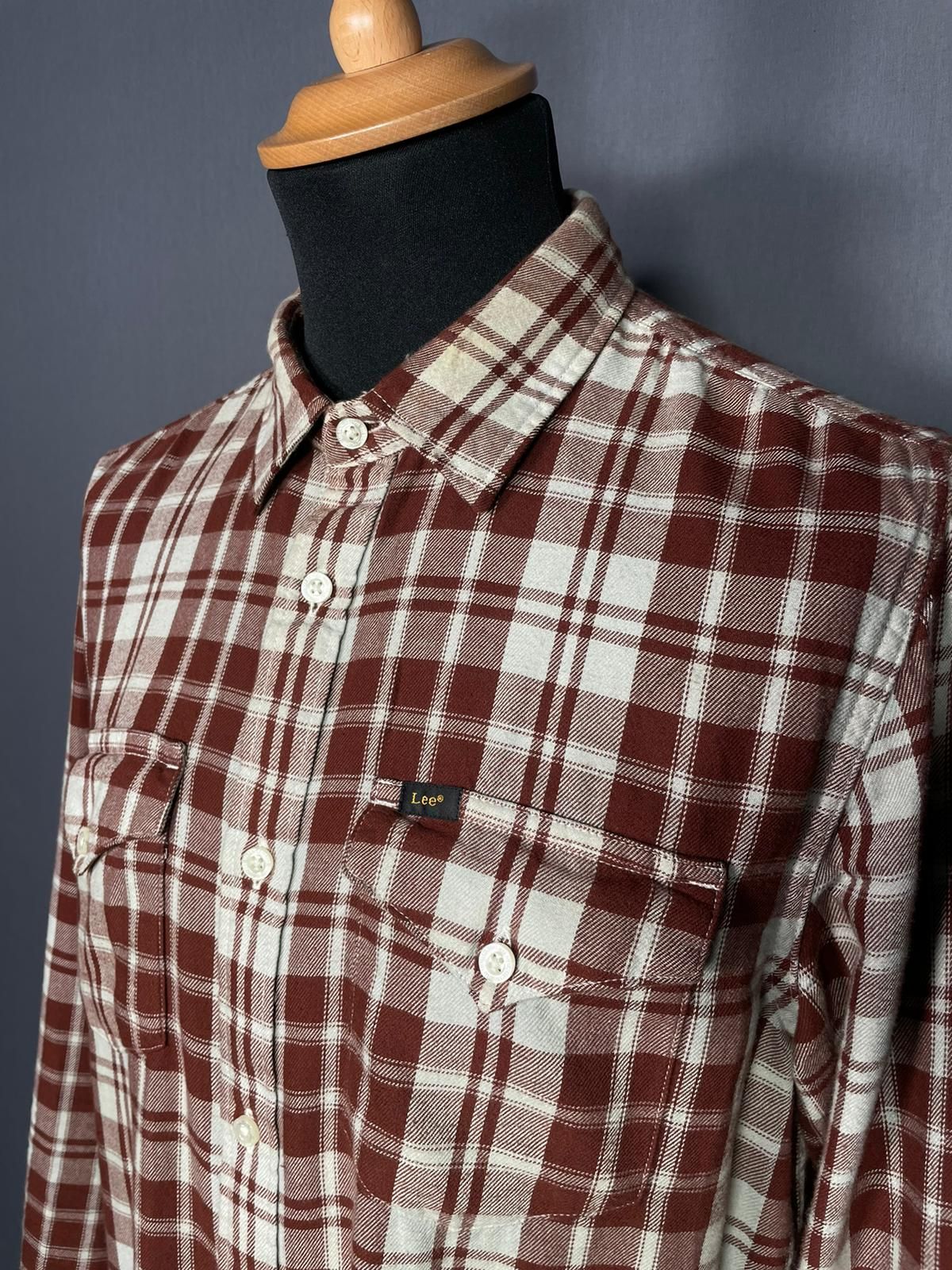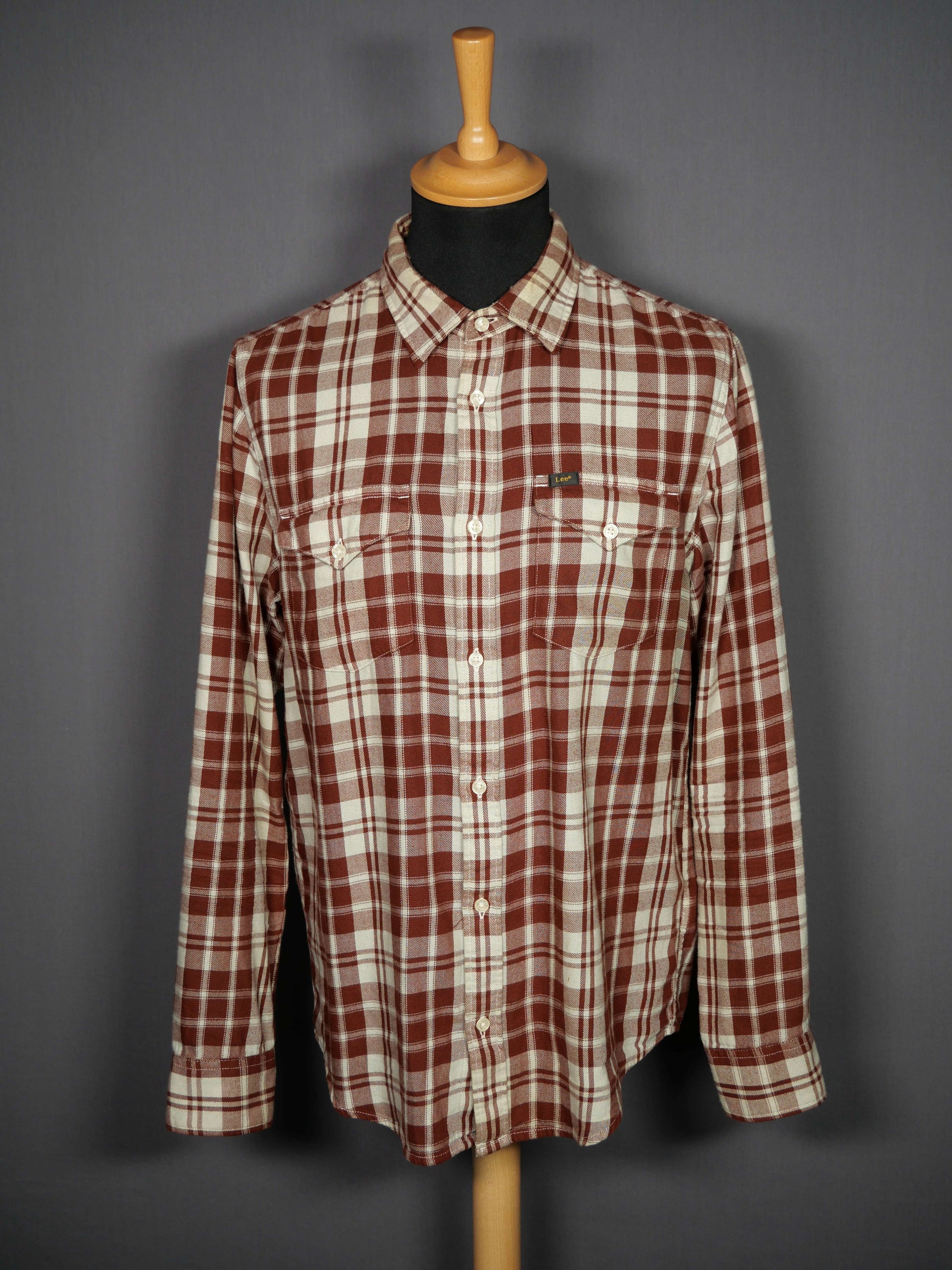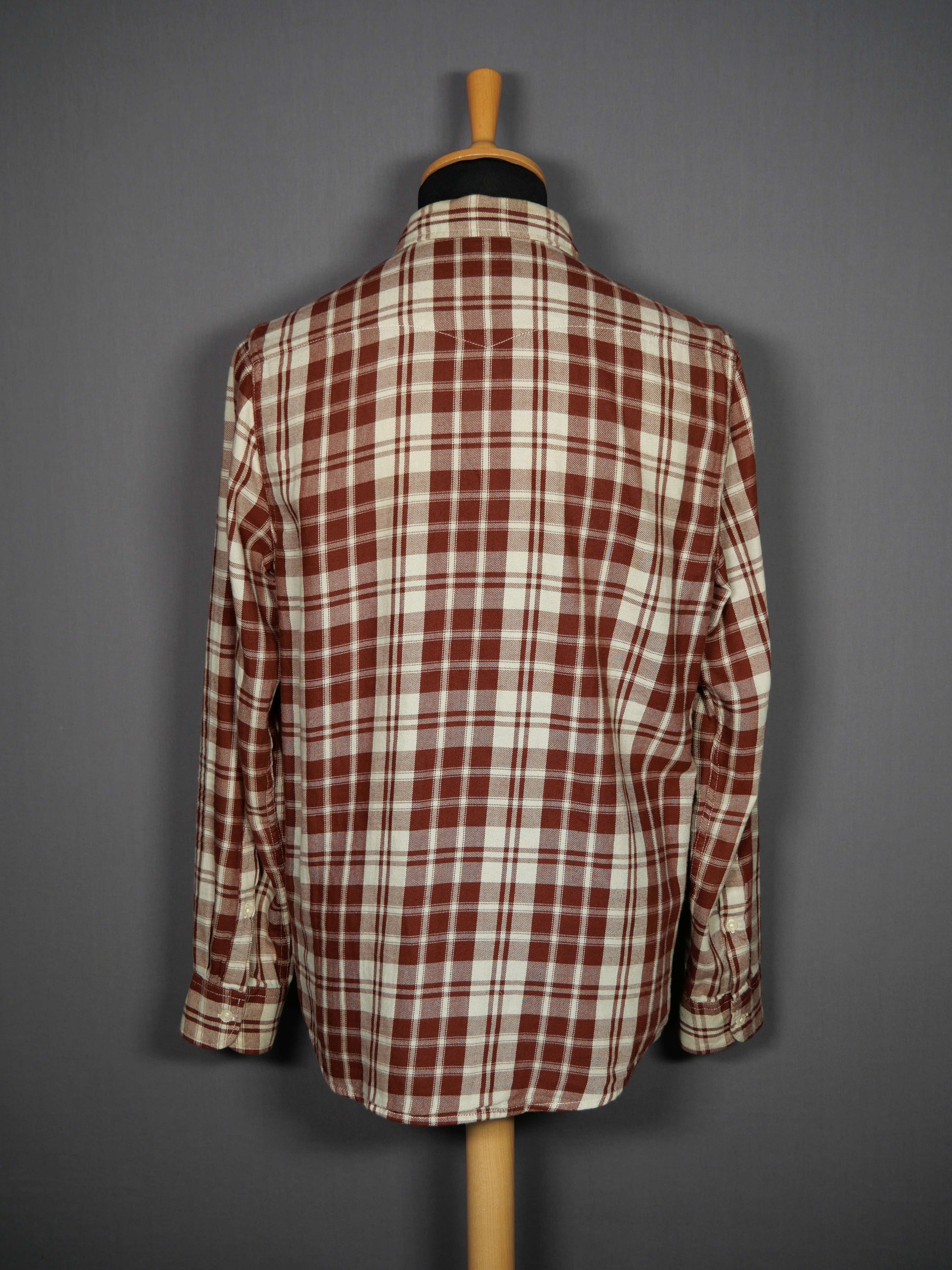 Lee Westernshirt kariert Zustand: Gut / Getragen Leichte Flecken (gem. Bild) Material: 100% Baumwolle Grösse: 16.5/L Kragen: 16.5 inch Rücken: 78 cm Brust: 110 cm Taille: 106 cm Schulter: 44 cm |