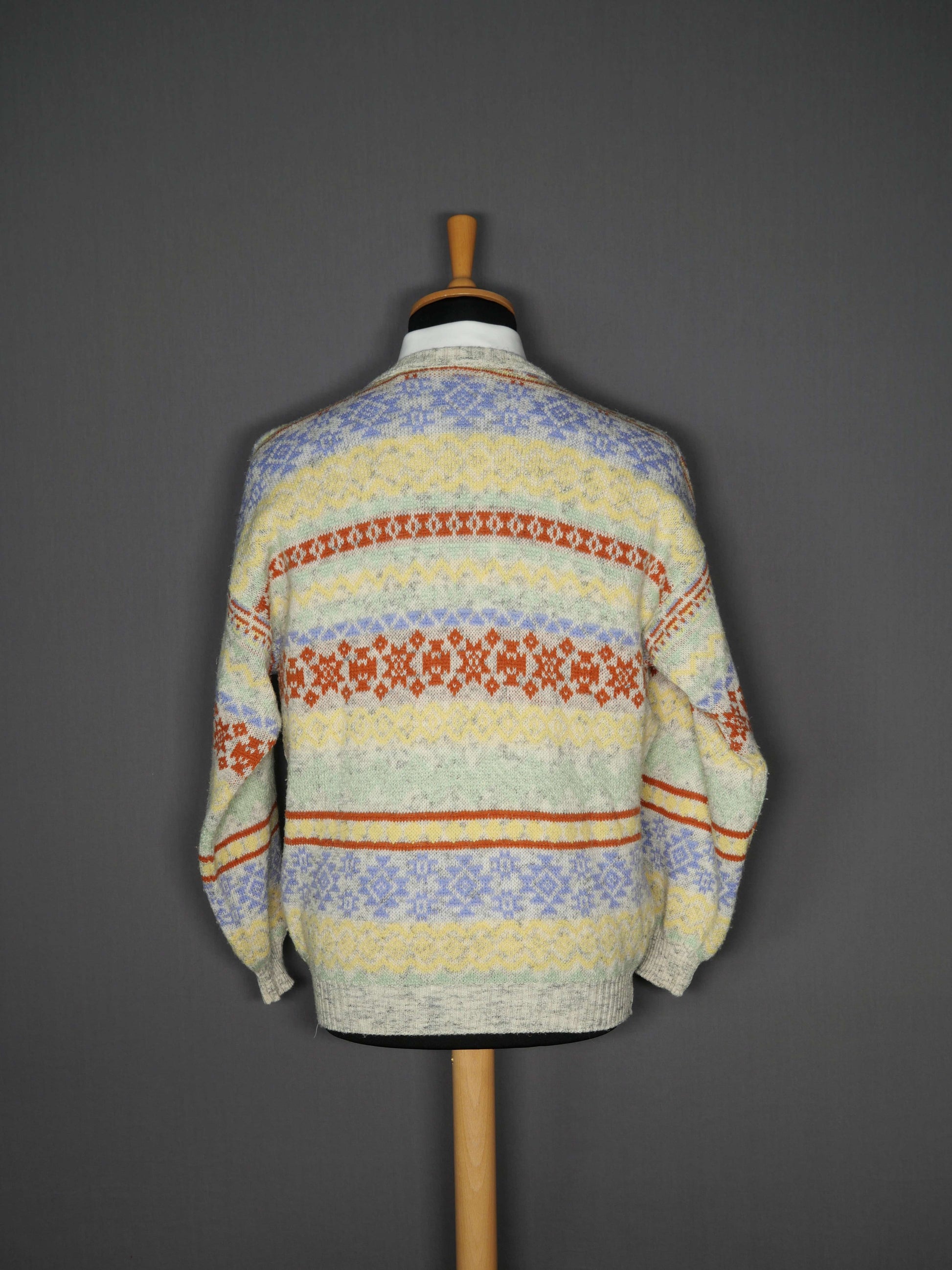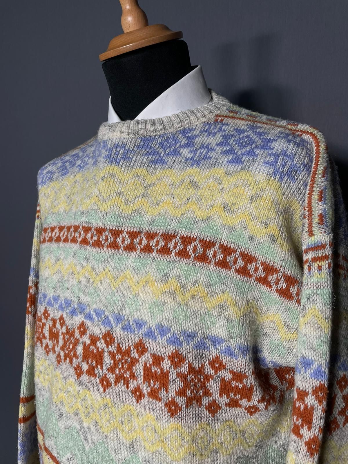 Vintage Pullover bunt Muster Zustand: Gut / Gebraucht Material: Wolle & Acryl Grösse: M Rücken: 64 cm Brust: 116 cm Schulter: 58 cm |