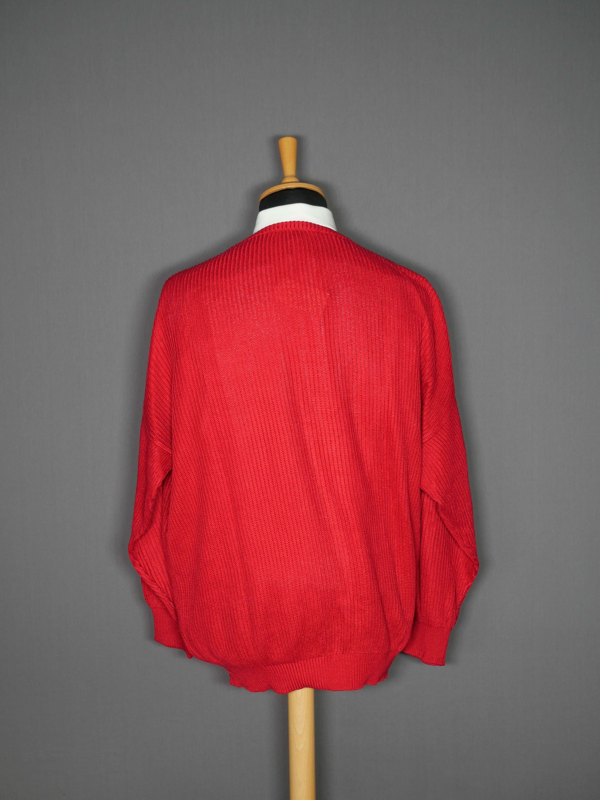 Vintage Pullover rot weit geschnitten Zustand: Gut / Gebraucht Material: 100% Baumwolle Grösse: XL Rücken: 73 cm Brust: 134 cm Schulter: 67 cm |